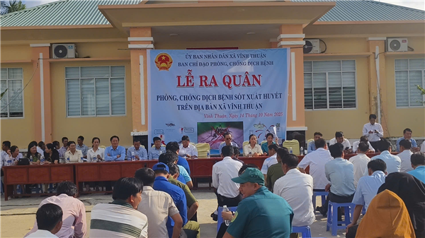 Sáng ngày 14 tháng 10 năm 2025, tại xã Vĩnh Thuận đã chính thức phát động một chiến dịch quyết liệt nhằm phòng, chống dịch bệnh Sốt xuất huyết đợt 2 năm 2025. Đây là hoạt động chiến lược do UBND xã Vĩnh Thuận phối hợp chặt chẽ cùng Trung tâm Y tế Vĩnh Thuận triển khai, thể hiện sự chủ động, không khoan nhượng của địa phương trong việc tăng cường tối đa các biện pháp ngăn chặn nguy cơ bùng phát dịch bệnh trong mùa cao điểm.