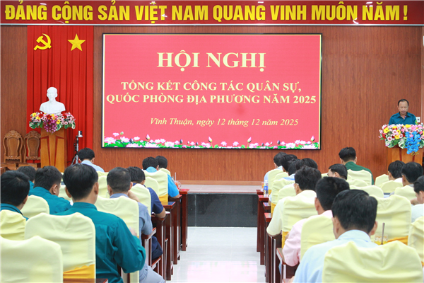 Sáng ngày 12/12/2025, tại Hội trường UBND xã Vĩnh Thuận, Ban Chỉ huy Quân sự xã Vĩnh Thuận tổ chức Hội nghị tổng kết công tác quân sự, quốc phòng địa phương năm 2025. Hội nghị nhằm đánh giá toàn diện kết quả thực hiện nhiệm vụ trong năm, đồng thời đề ra phương hướng, chỉ tiêu và các giải pháp trọng tâm cho năm 2026.